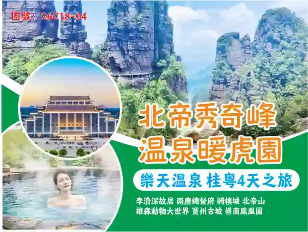 北帝秀奇峰、溫泉暖虎園、樂天溫泉高鐵4天
