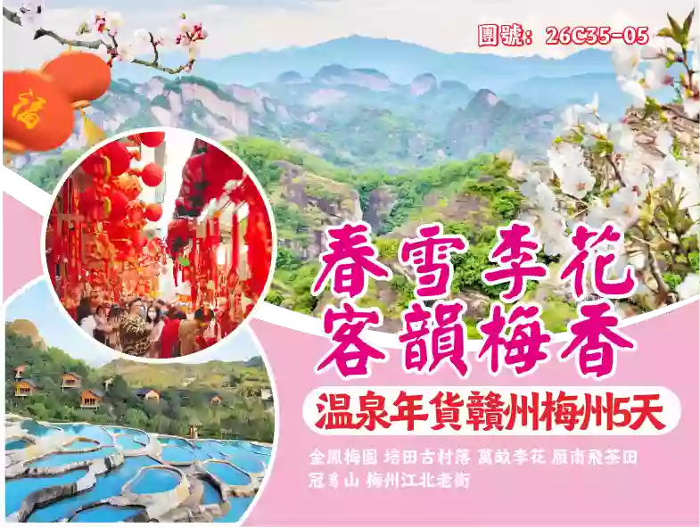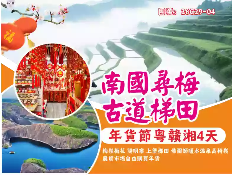 南國尋梅、客家梯田、暖水溫泉粵贛湘年貨4天