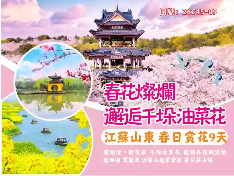 春花燦爛 邂逅千垛油菜花 黿頭渚春櫻 鶴舞鹽城 江蘇山東 9天之旅